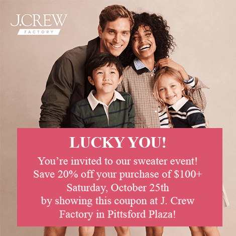 Save 20% at J. Crew Factory on Saturday, October 25th when you show this coupon!
